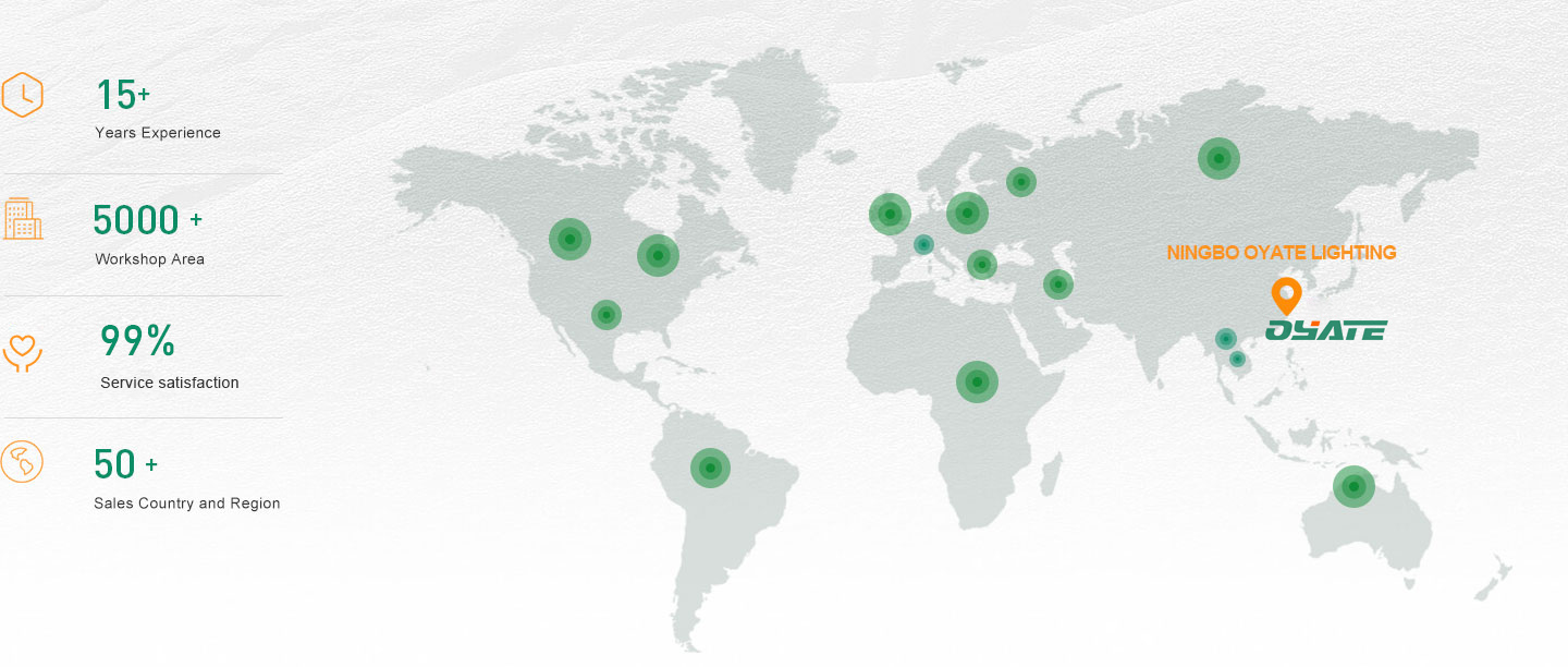 We are located in Ningbo city with convenient transportatio acess.Delicated to strict quality control and thoughtful customer service,our experience staff memebers are always available to discuss your requirments and ensure full customer satisfaction.Whether selecting a current product from our catalogue or seeking enginnering assistance ,You can talk to our professionial export team about your sourcing requirments.Ningbo Oyate Lighting Electrical appliance Co.,ltd firmly abides by its business tenet: A REPUTATION BUILT ON QUALITY AND INTEGRITY. We sincerely welcome our old and new clients to our company; Business talks and establishment of cooperation in various forms are greatly appreciated. Let’s join our efforts to make a greater market share. environment purpose.